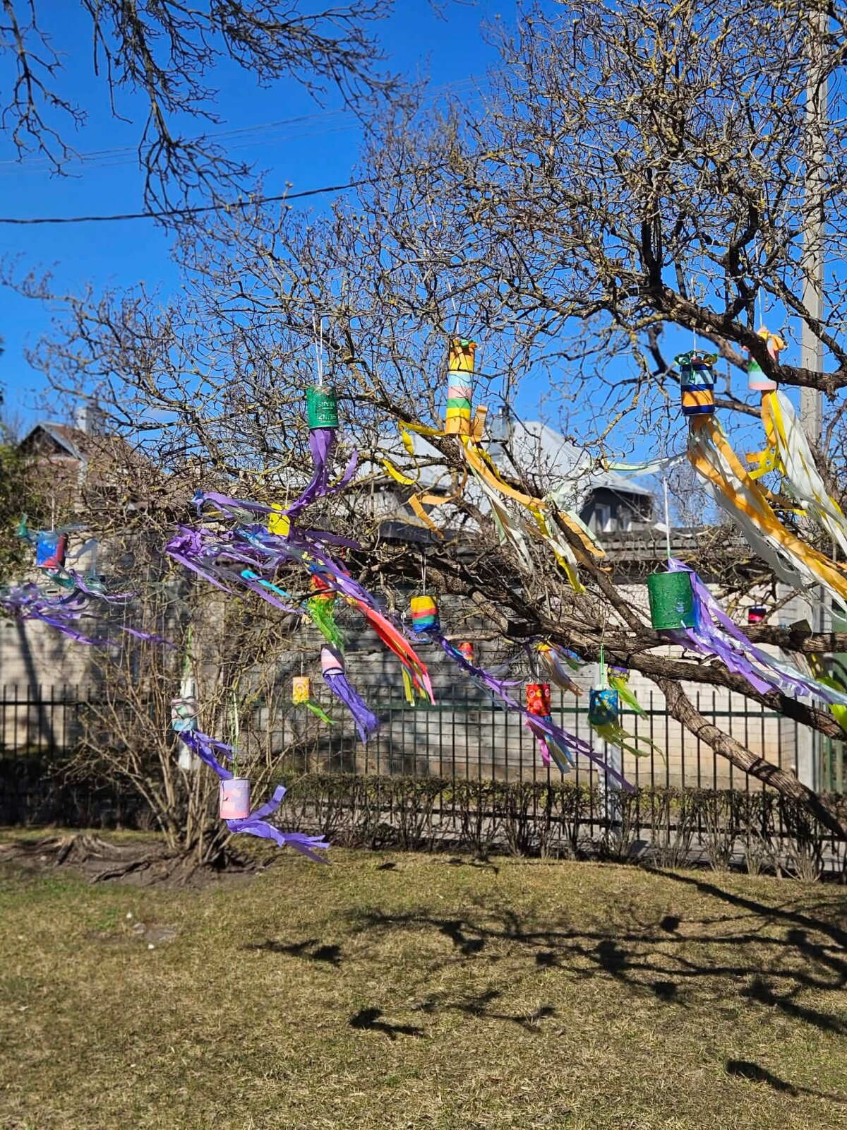 - Margaspalviai vėjarodžiai: ant medžio šakų plevėsuoja spalvoti vėjarodžiai, sukurti iš kavos indelių, įvairių skardinių ir spalvotų plastikinių maišelių. Jie ne tik puošia mūsų įstaigos lauko aplinką, bet ir žaismingai demonstruoja vėjo jėgą.