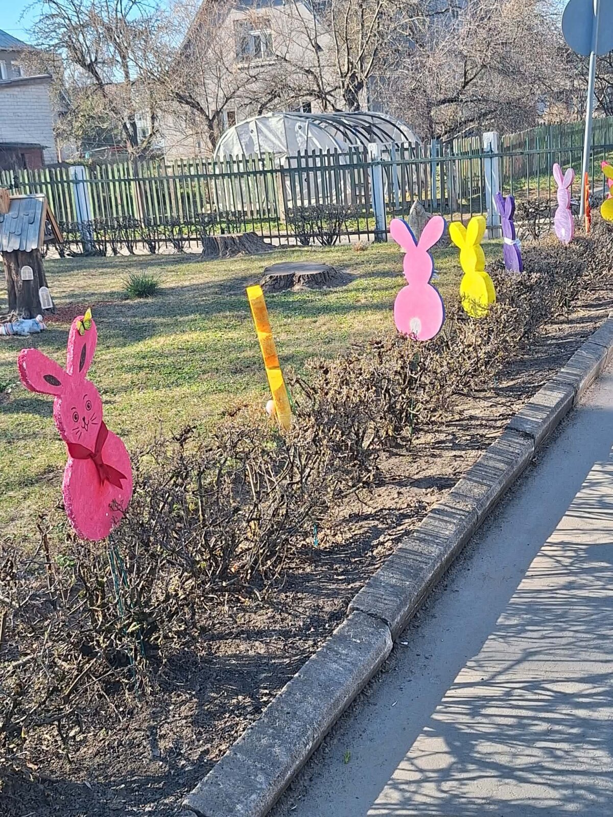 - Pavasariniai kiškiai: įvažiavimą į mūsų įstaigą papuošė spalvingi pavasariniai kiškiai, prikelti iš polistirolo atliekų. Tai puikus pavyzdys, kaip statybinės medžiagos gali virsti ilgaamžiu lauko dekoru.